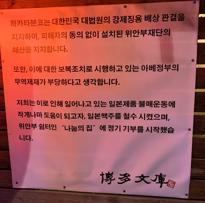 일본제품 불매운동에 동참해서 일본산 맥주를 팔지 않고 있다는 점입니다.