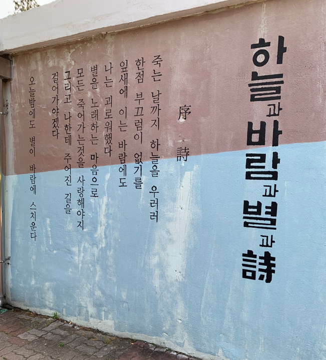 전시를 마치고 밖으로 나오면, 박물관 외부 벽면에 윤동주 시인의 서시가 적혀있습니다.