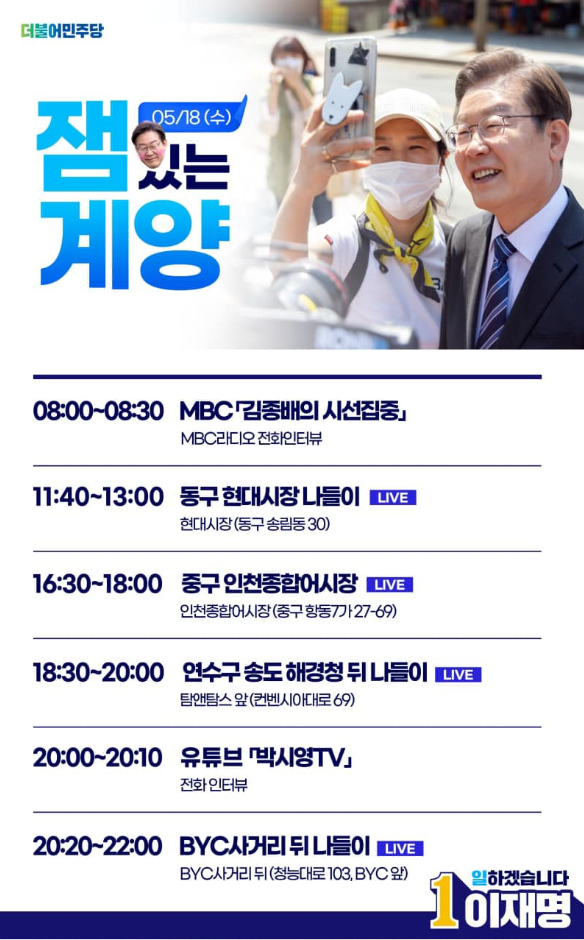 이재명 후보 5월18일(수) 주요일정(feat.인천계양을) 본문