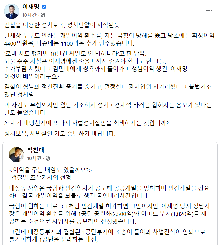 아래는 이재명 의원 페이스북 게시글 전문 입니다.