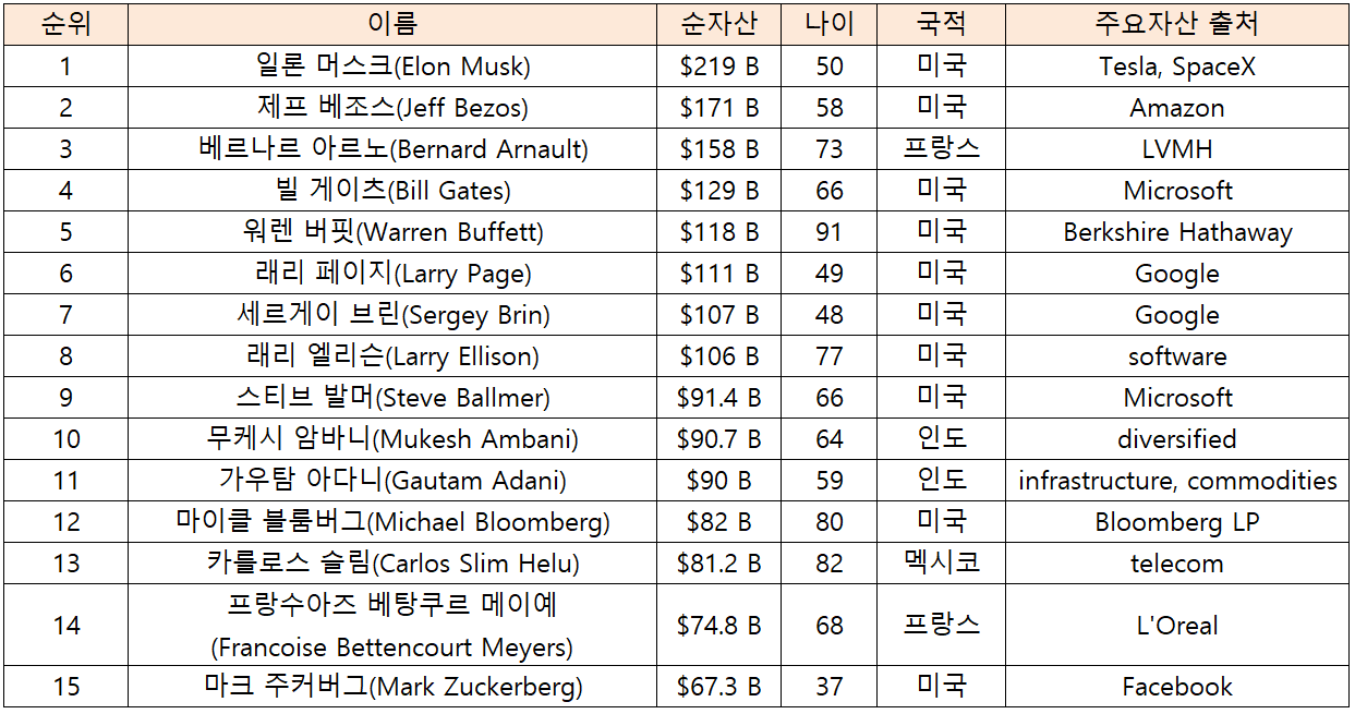 ■ 2022년 세계 부자 순위 Top15
