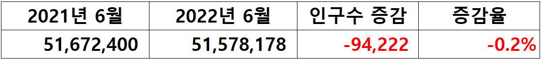 2022년 6월 우리나라 인구 1년만에 9만명 이상 감소 본문