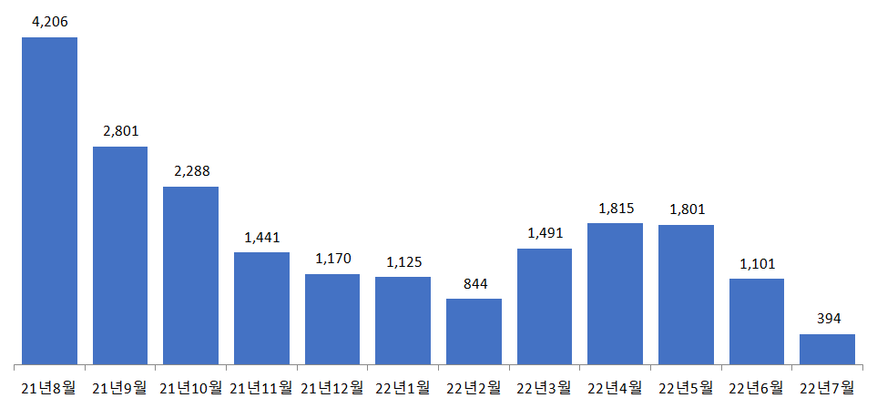 ■21년8월~22년7월 월간 서울지역 아파트 거래건수 현황(출처 : 국토교통부 실거래가공개시스템)