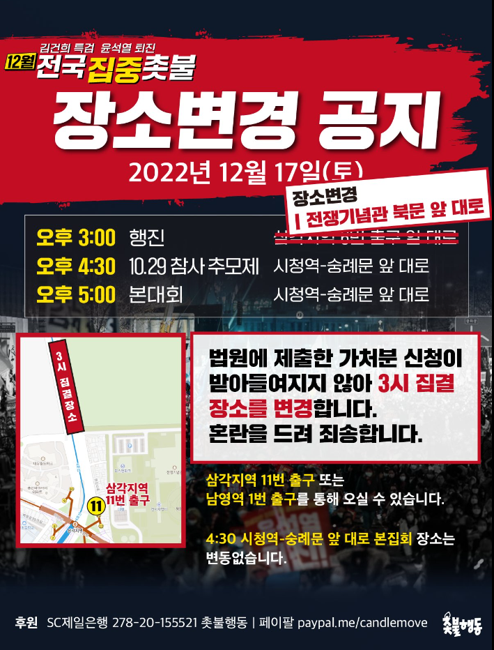 | '윤석열 퇴진' 12월3일(토) 촛불집회 예정 (0) | 2022.11.27 |