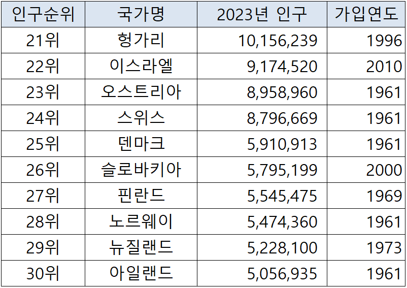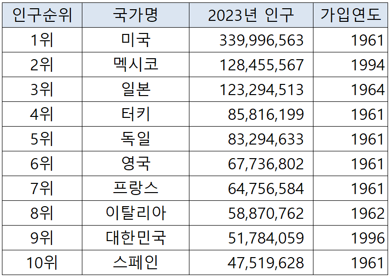 2023년 OECD 국가별 인구 현황에 대해 알아보겠습니다.