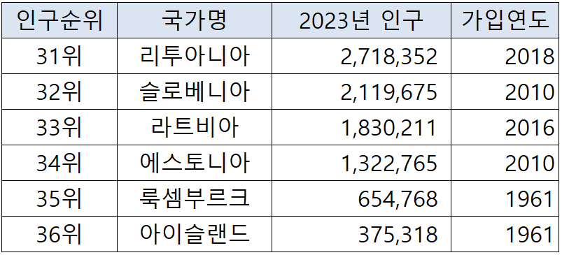 ■2023년 OECD 회원국 인구 수 현황(인구순)