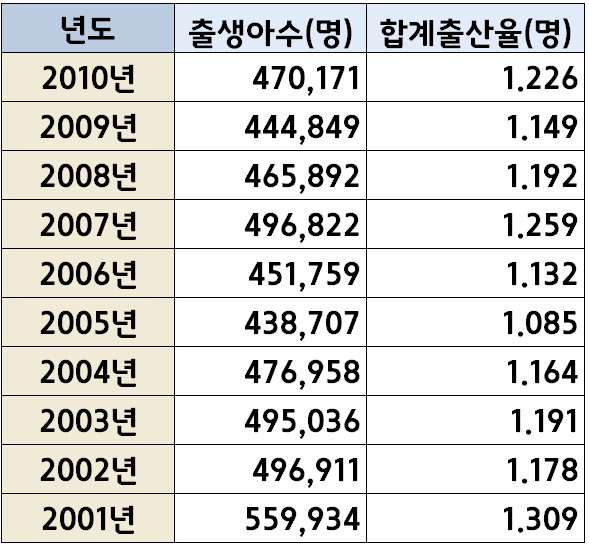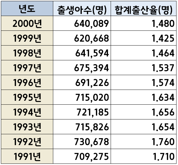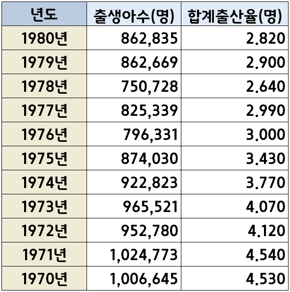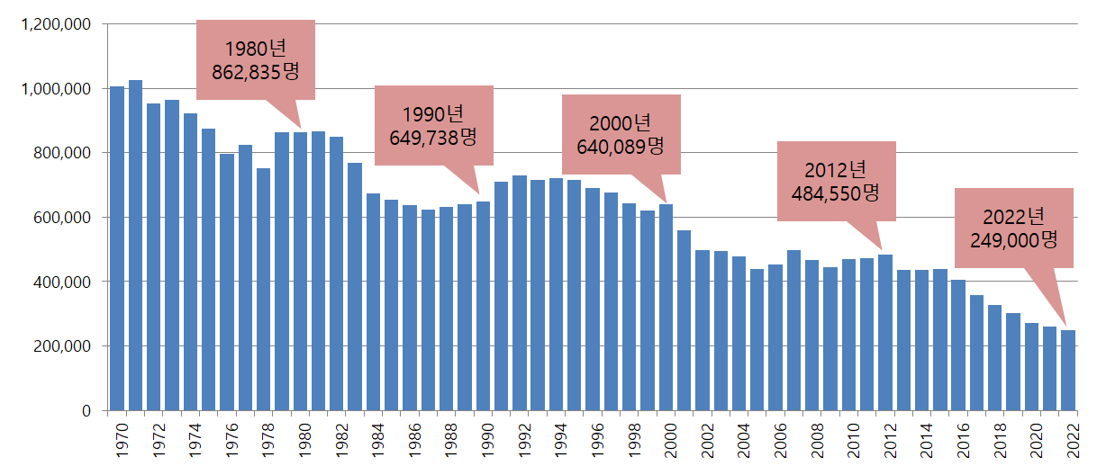 한국 년도별 출생아 수(1970년~2022년) 본문