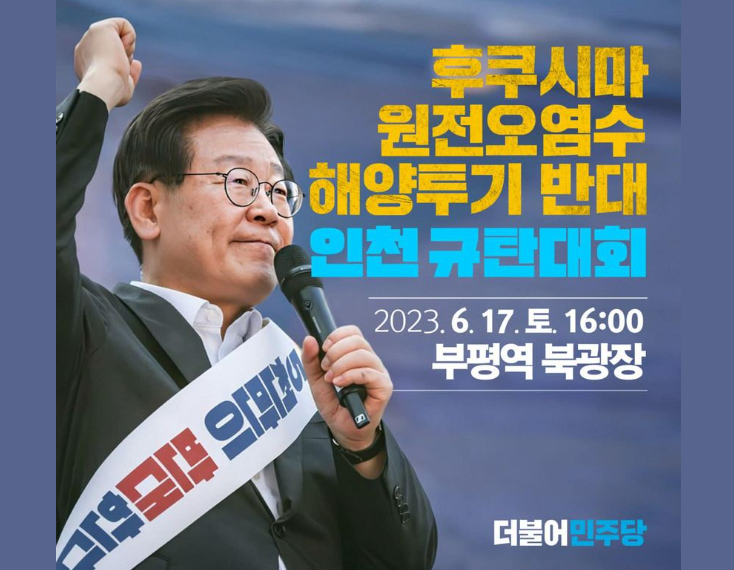 더불어민주당은 페이스북 게시판을 통해, 인천지역에서 방사능 오염수 해상 방류에 대한 규탄대회를 개최할 예정입니다.