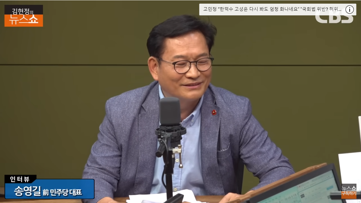 송영길 전 대표가 검찰을 강하게 비판하며, "검사를 탄핵기소 해야된다" 고 주장했습니다. 2023년 6월21일 방송된 CBS김현정의 뉴스쇼에 출연한 송영길 전 대표는 현재, "검찰 독재정권에서 민주주의가 신음하고 있다"고 밝히며, 검찰을 강하게 비판 했습니다.