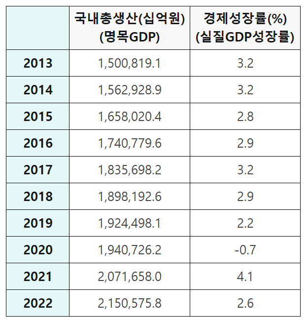 경제성장률 의미와 최근10년 현황(2013년~2022년) 본문