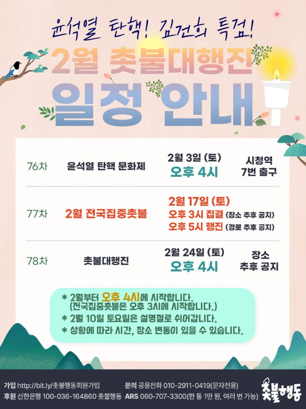 24년 2월 윤석열 탄핵 요구 촛불집회 일정 본문