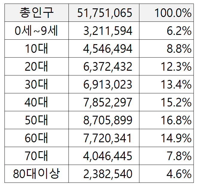2024년 연령대별 인구수(feat.통계청) 본문