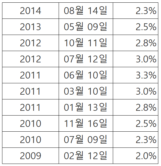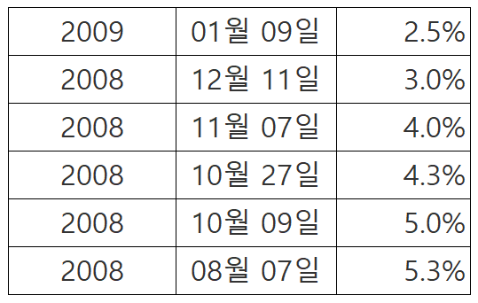 한국은행 기준금리 변동 현황(2008년~2024년2월) 본문