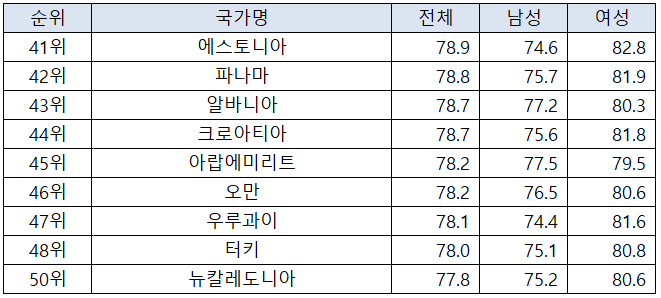 국가별 기대수명(평균수명) 현황 및 순위 본문