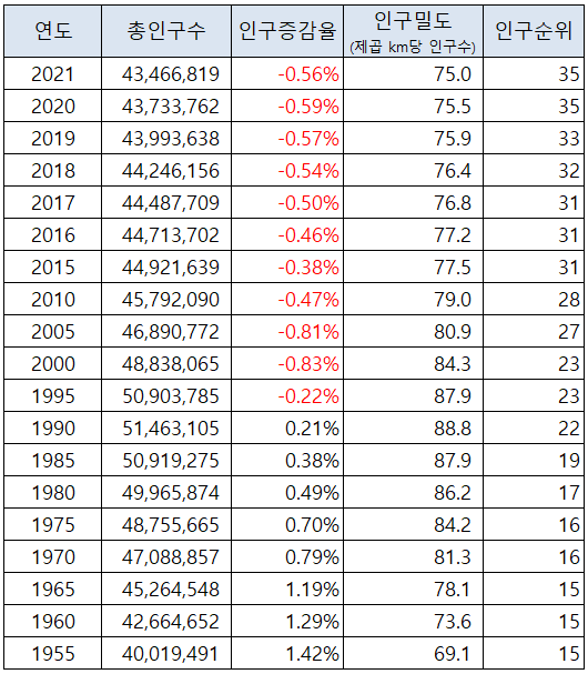 | 남북한 인구 비교 및 전망(1955년~2095년) (1) | 2021.11.20 |